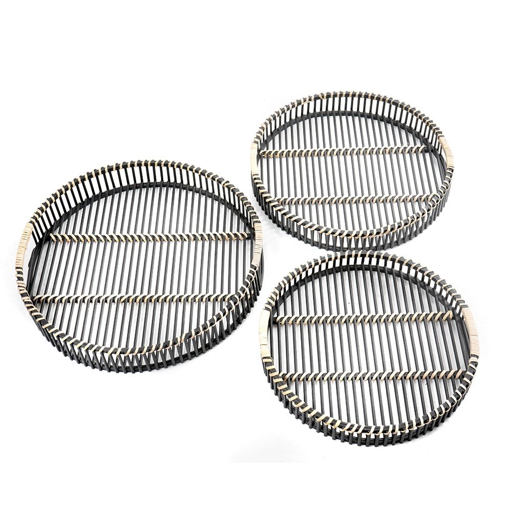 Elevate your home decor with the Round Shaped Rattan Black Tray. This versatile and stylish 3-piece tray effortlessly combines the natural charm of rattan in a black finish.