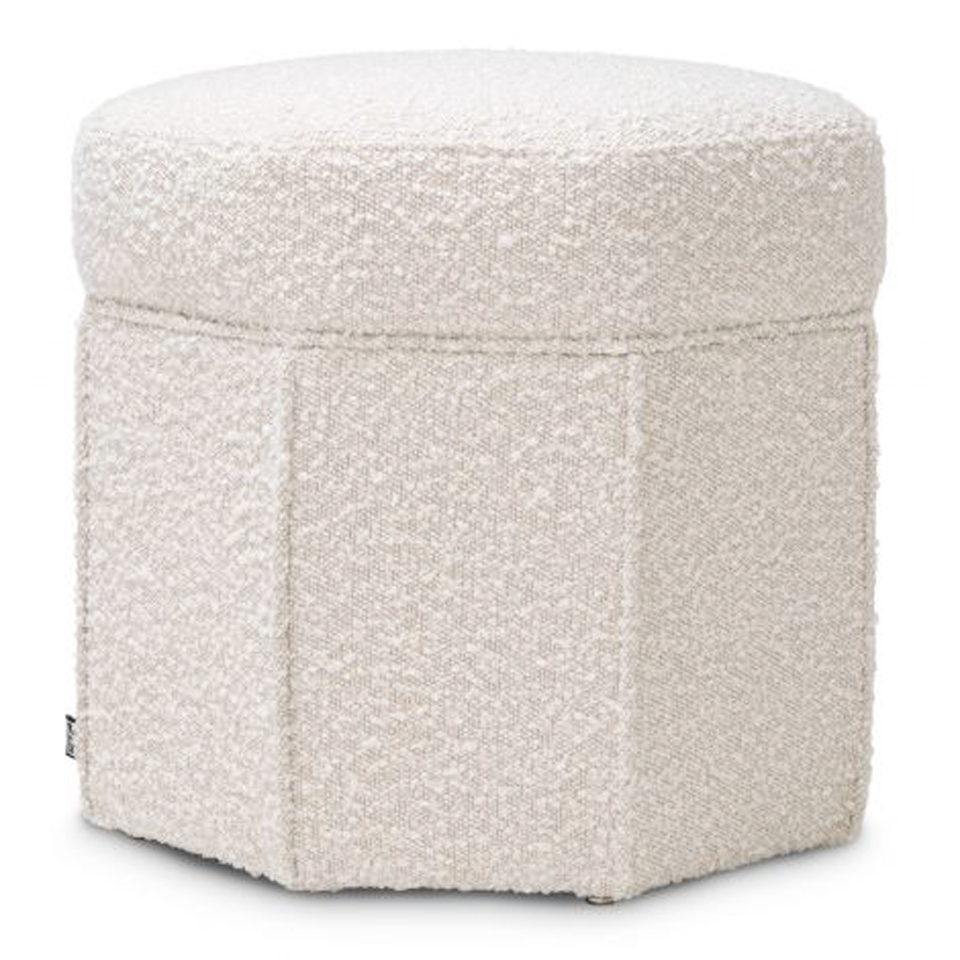 Featuring a cream-coloured bouclé upholstery, this stool is a stylish extra seating option in your living lounge or a nice stool for your dressing table.