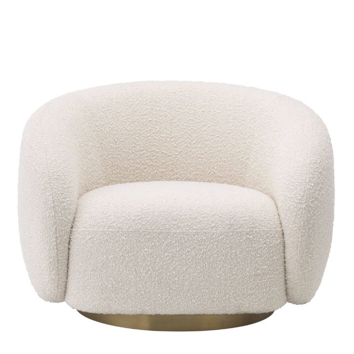 Cosy and conteporary,this elegantly curved swivel chair features a stylish Avalon sand upholstery and a bryshed brass swivel base.