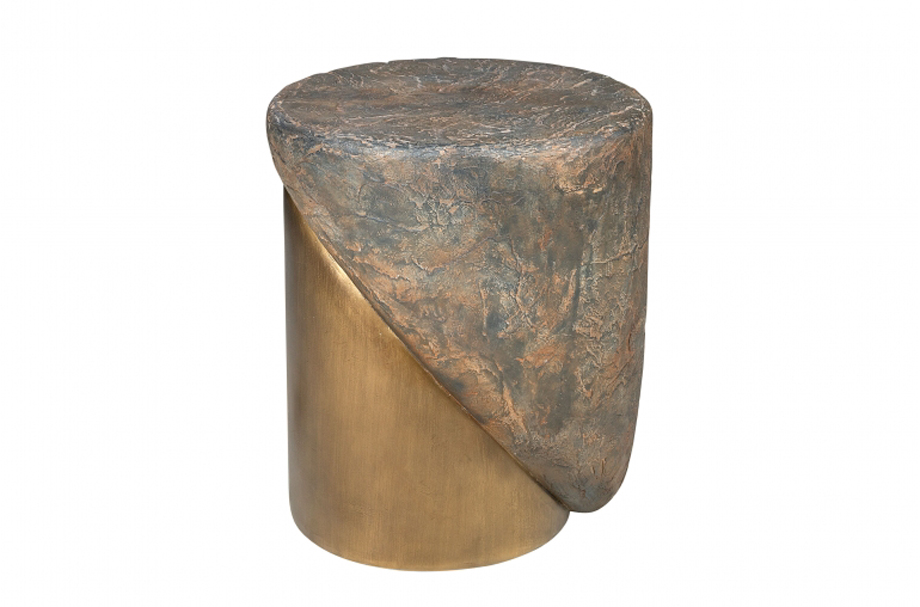 Core side table is an intriguing, sculptural side table made in metal with a patinated bronze finish. Thanks to its compact size, it makes an excellent hallway table, nightstand or companion for a sofa or armchair.