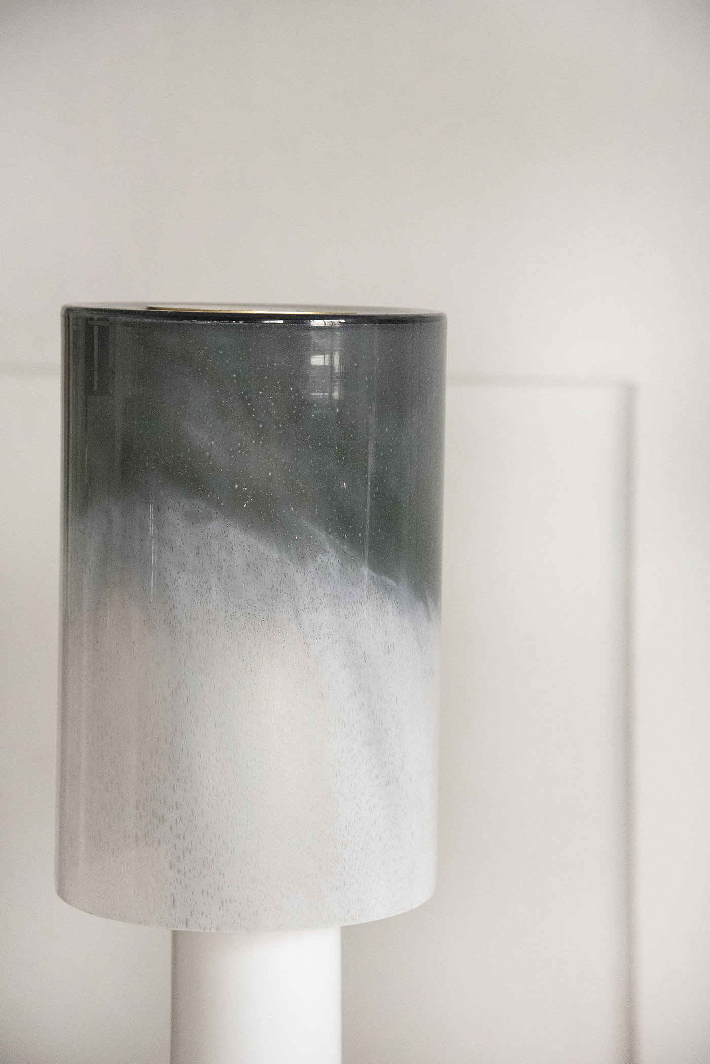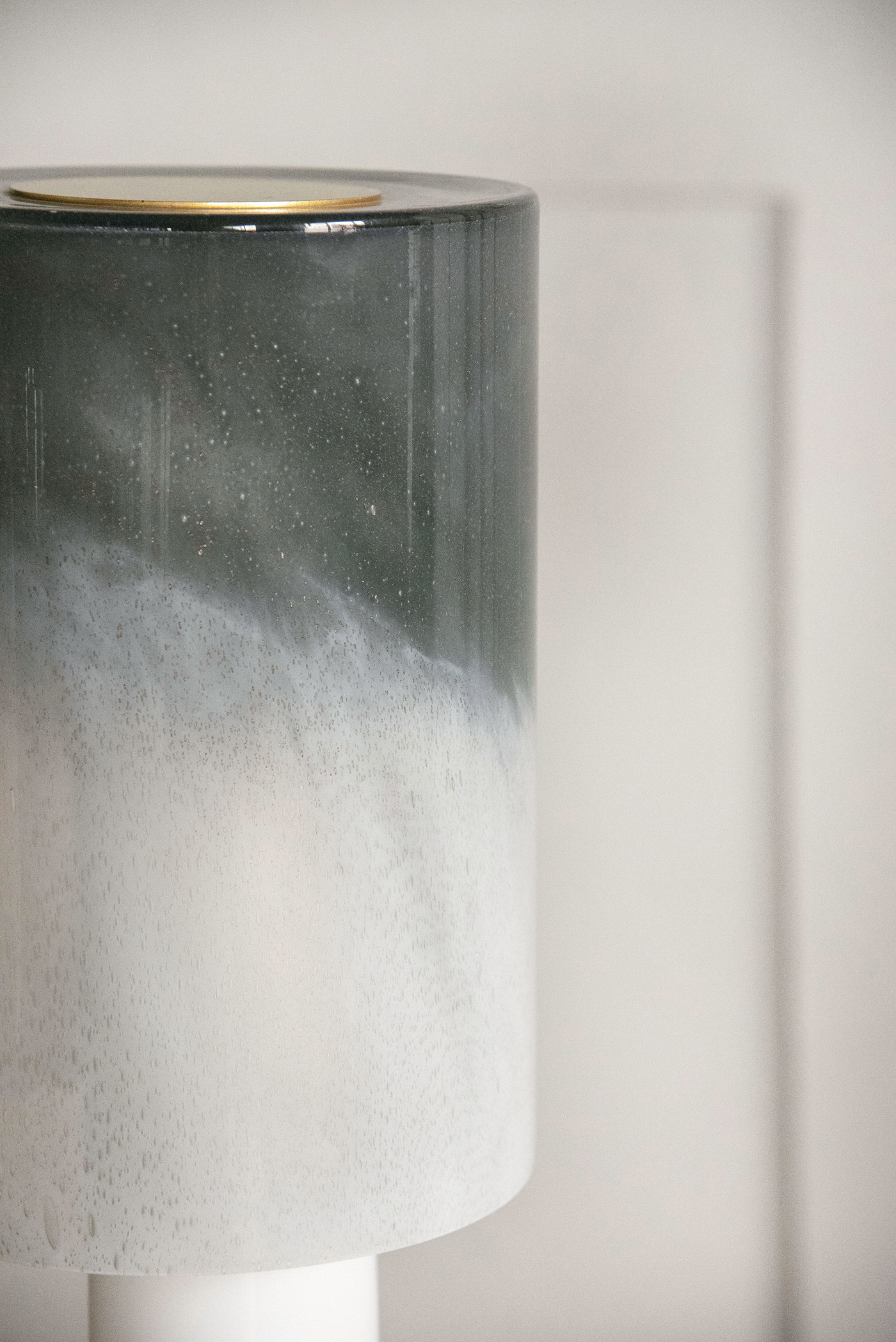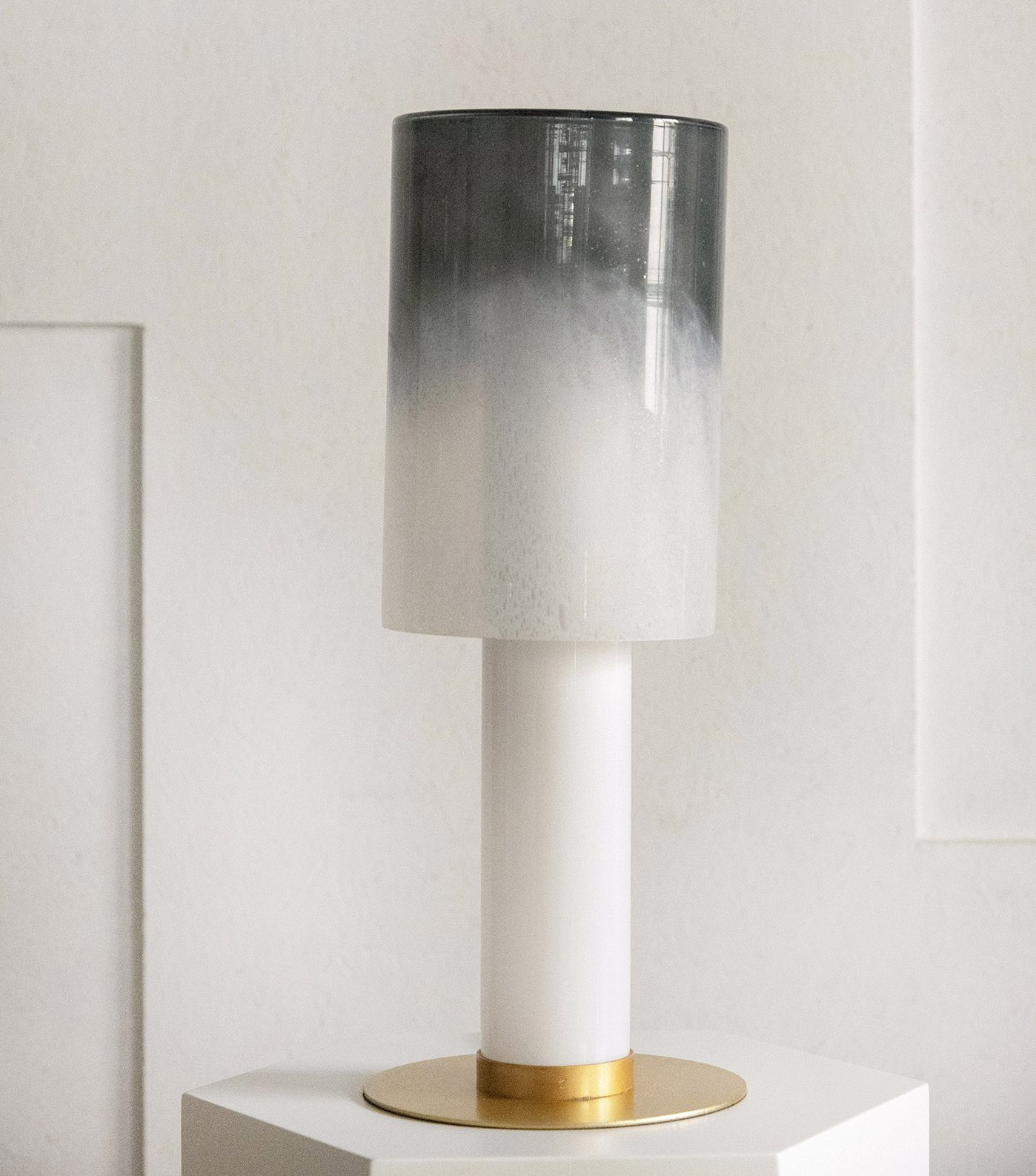 Glass lamp with a subtle swirl pattern for a space with ambience.