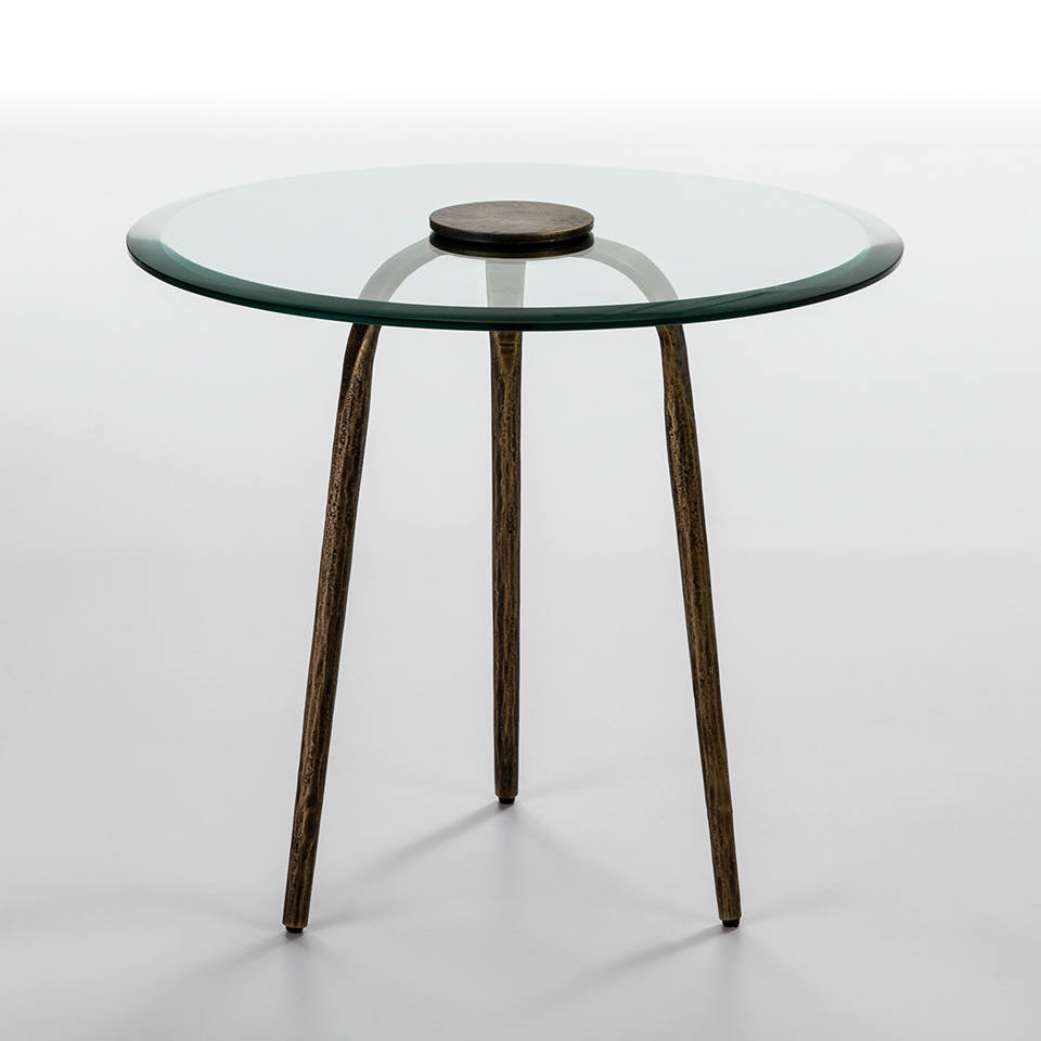 GLASS TOP & GOLD PATINATED LEGS