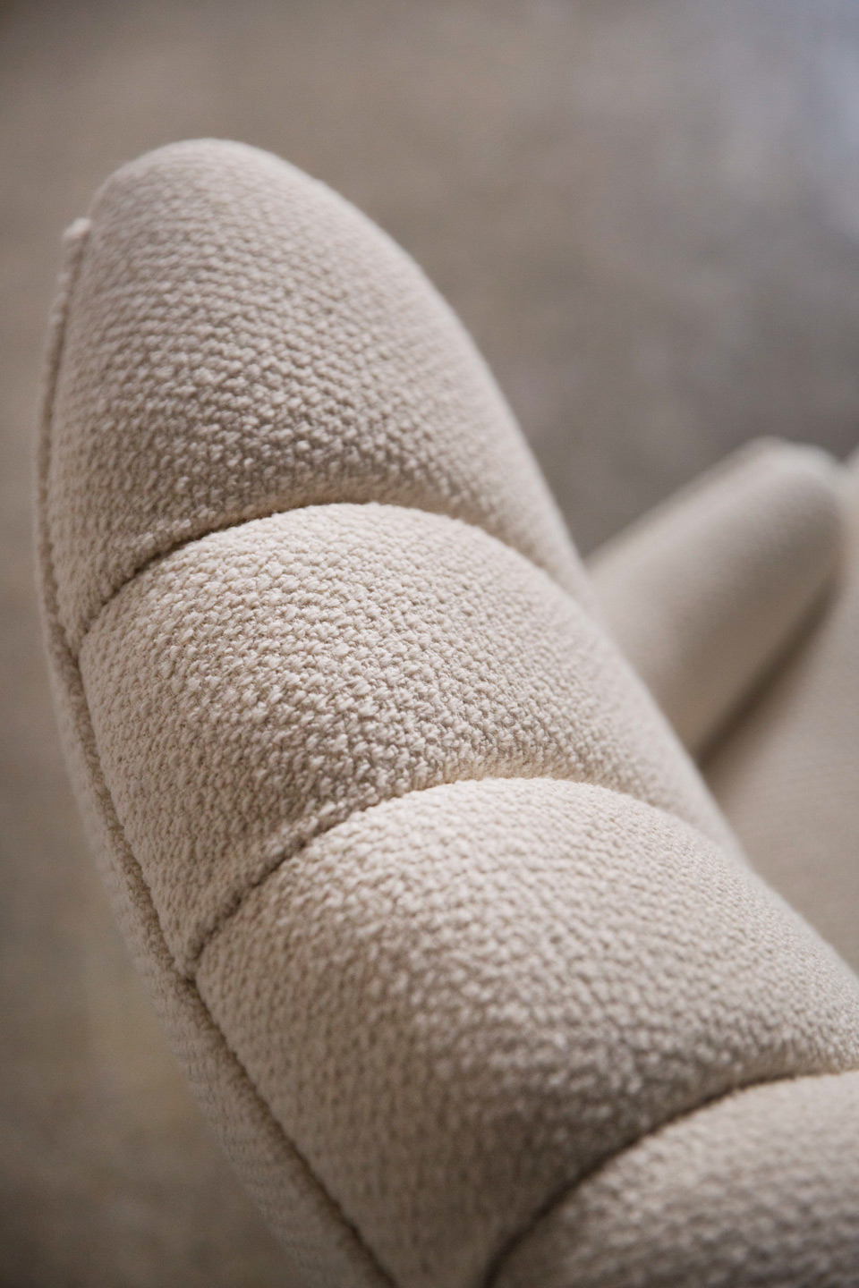 This armless lounge chair introduces a simple bracket-shape with tactile