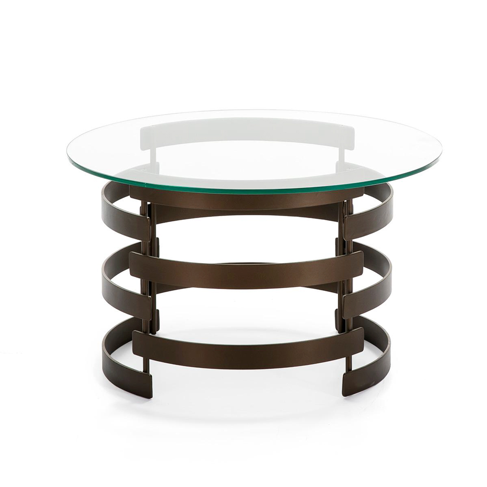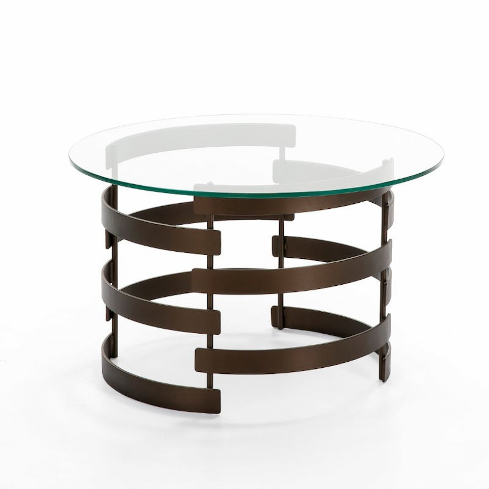 The Manhattan Table with brown iron base and glass top is an ideal complement to your living area. It is suitable as a coffee table for restricted spaces as well as a complimentary side table