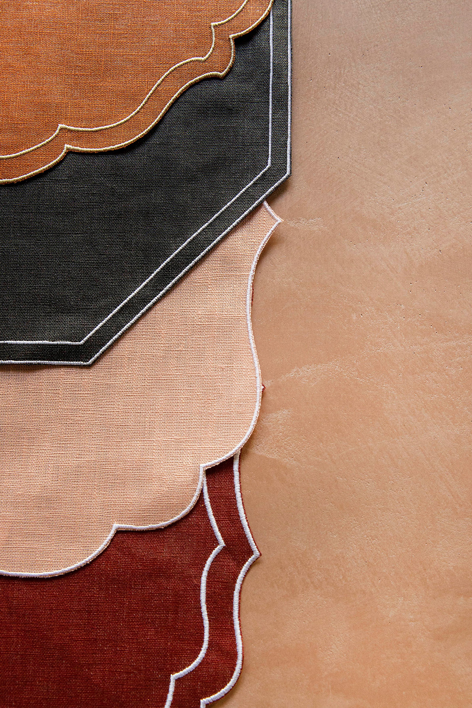 La Gallina Matta specialized in high-quality textiles for the table fashioned of 100% pure linen. Placemats & Napkins, boast classic silhouettes, tailored with a border embroidery in mercerized cotton available in a wide range of modern colors. Most importantly, the textiles are “oil clothed”, a unique coating technique that renders them stain-and wrinkle-resistant.