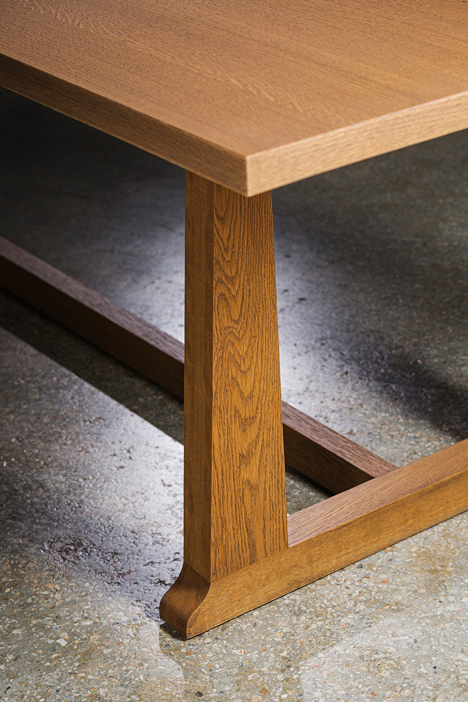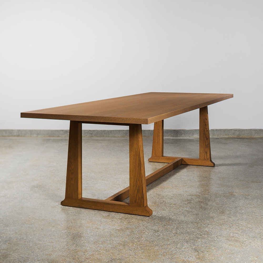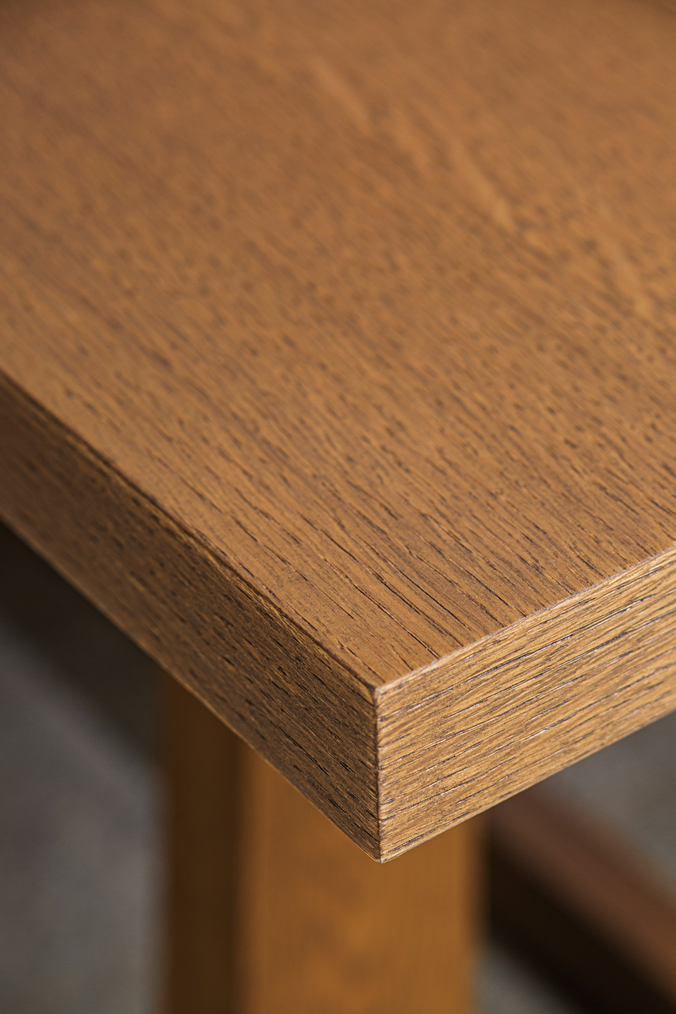 This modern chic dining table inspired from French country side style is an elegant choice for a relaxed dining room. Featuring oak veneer in honey mat color can match your earthy color palette.