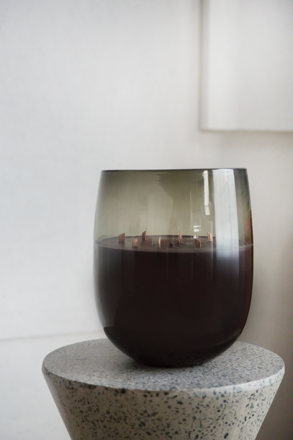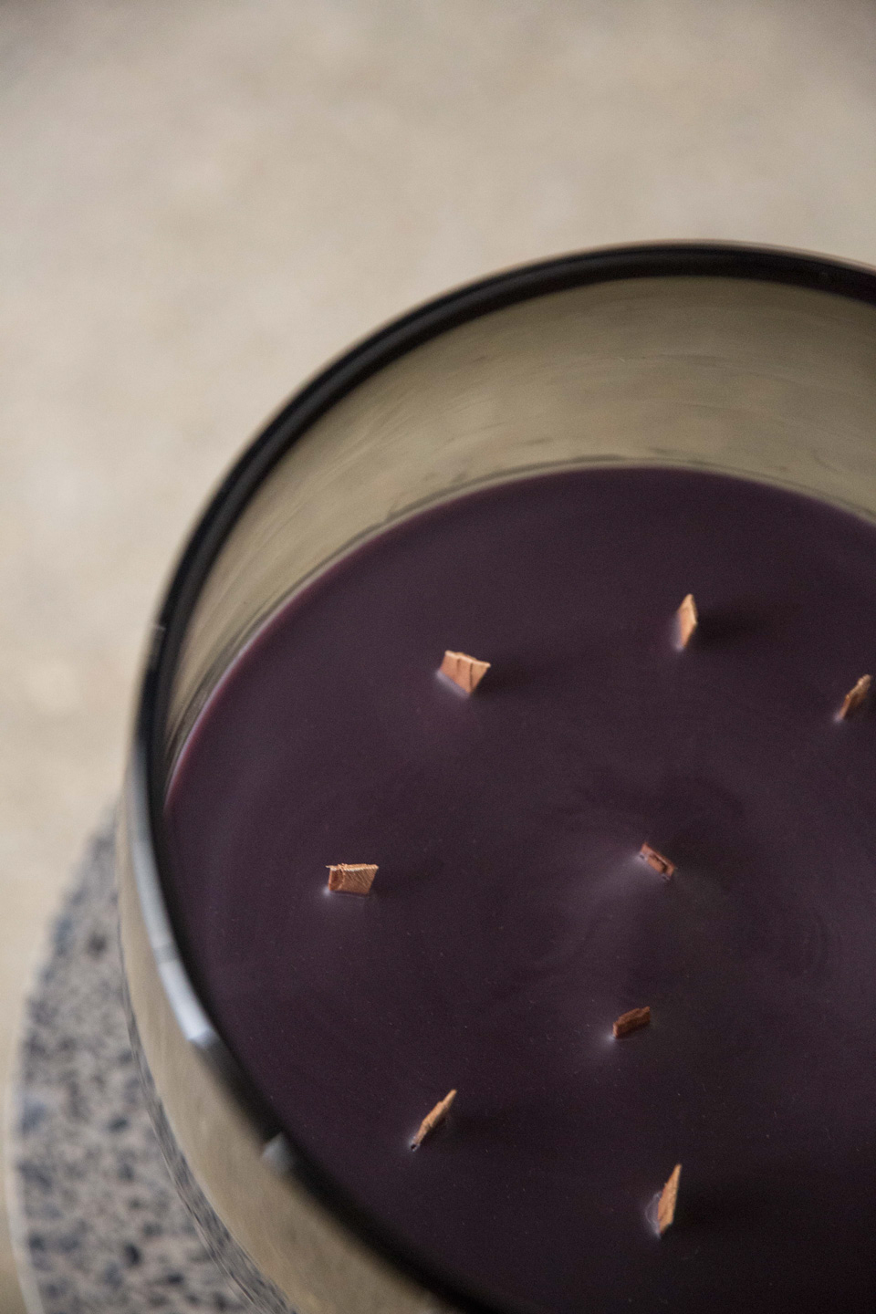 Hight quality Italian scented candle with multiple wooden fuses for a sensual atmosphere .