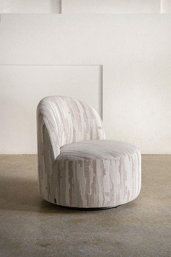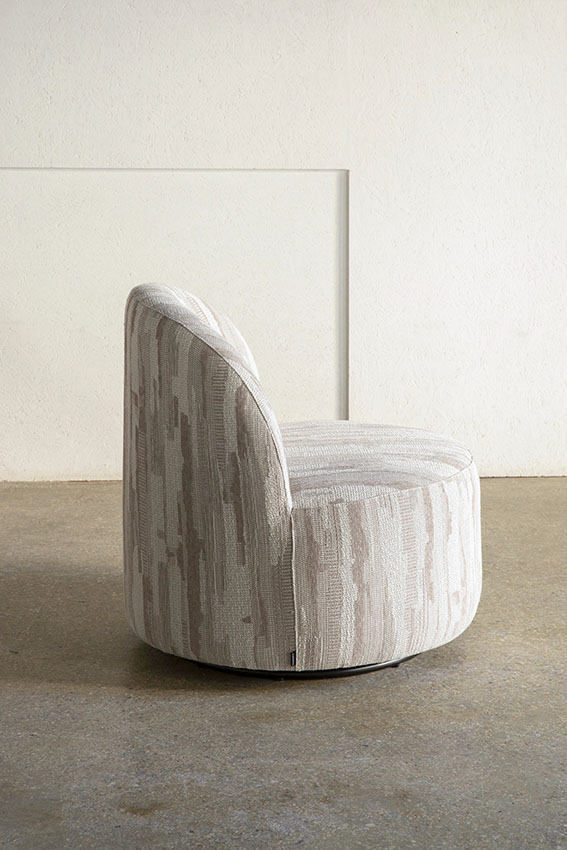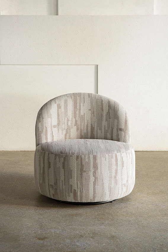 Sand fabric, rocking/ swivel base, steel & birch wood frame.