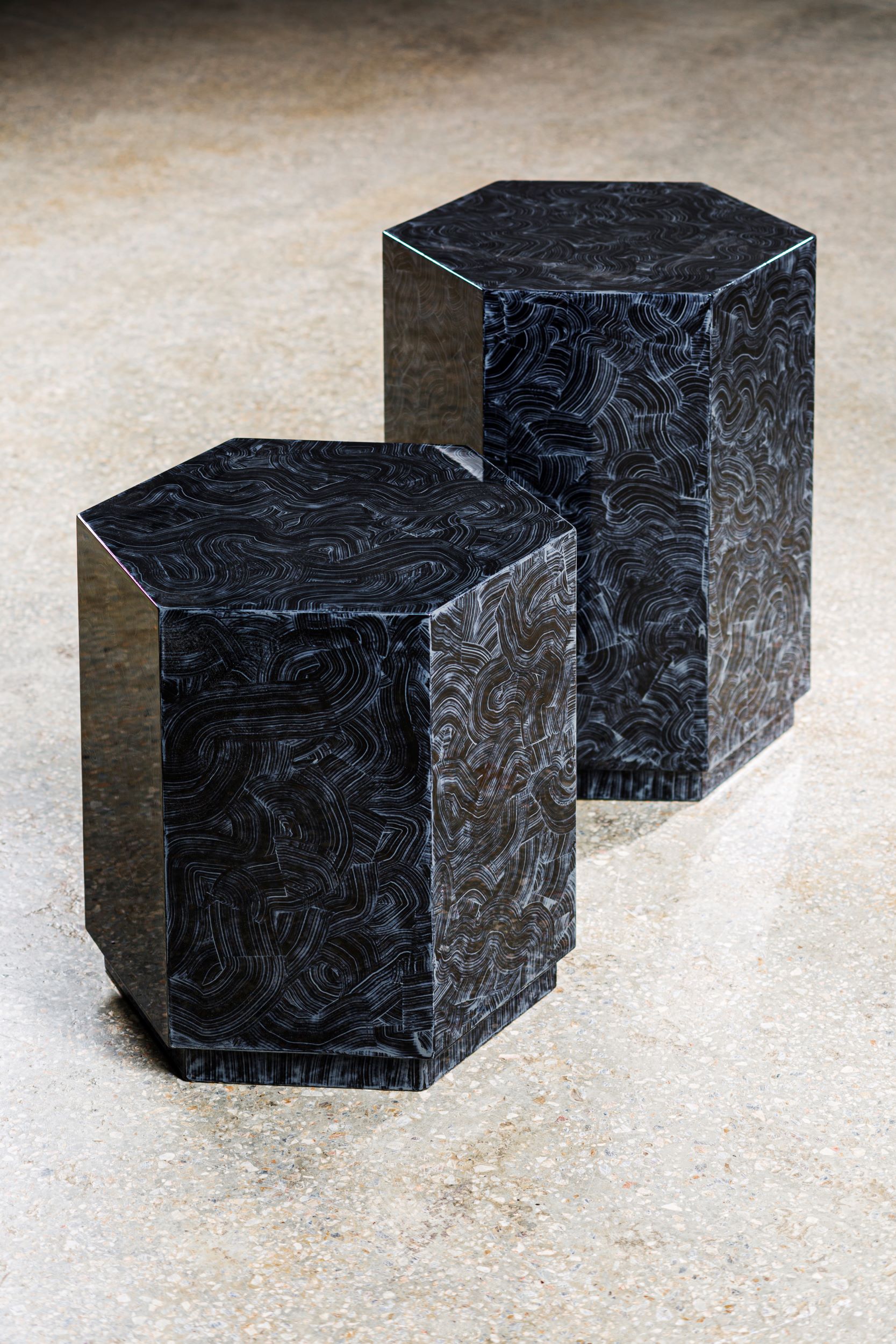 HEXAGON SIDE TABLE MACHINE BLACK FINISH