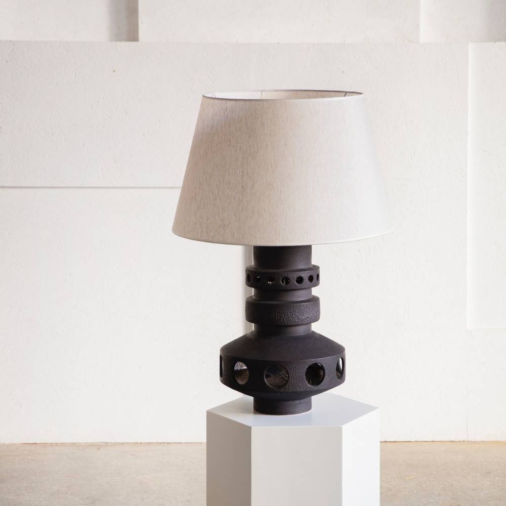 A lamp inspired by the galactic world. Cool feature of this lamp is that it has two light sources , one from the lamp shade and the other from the ceramic base.