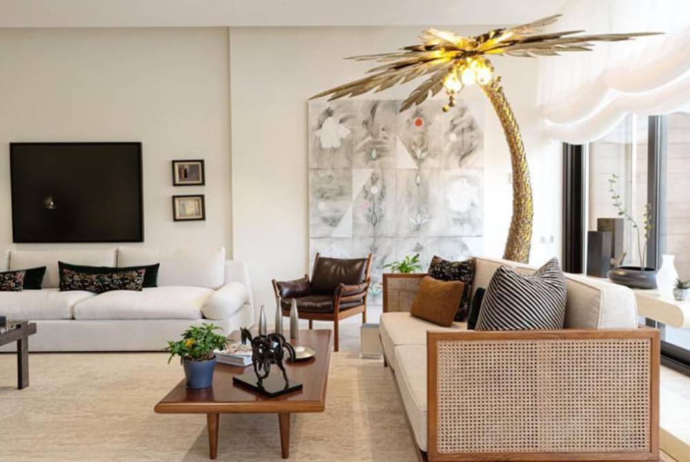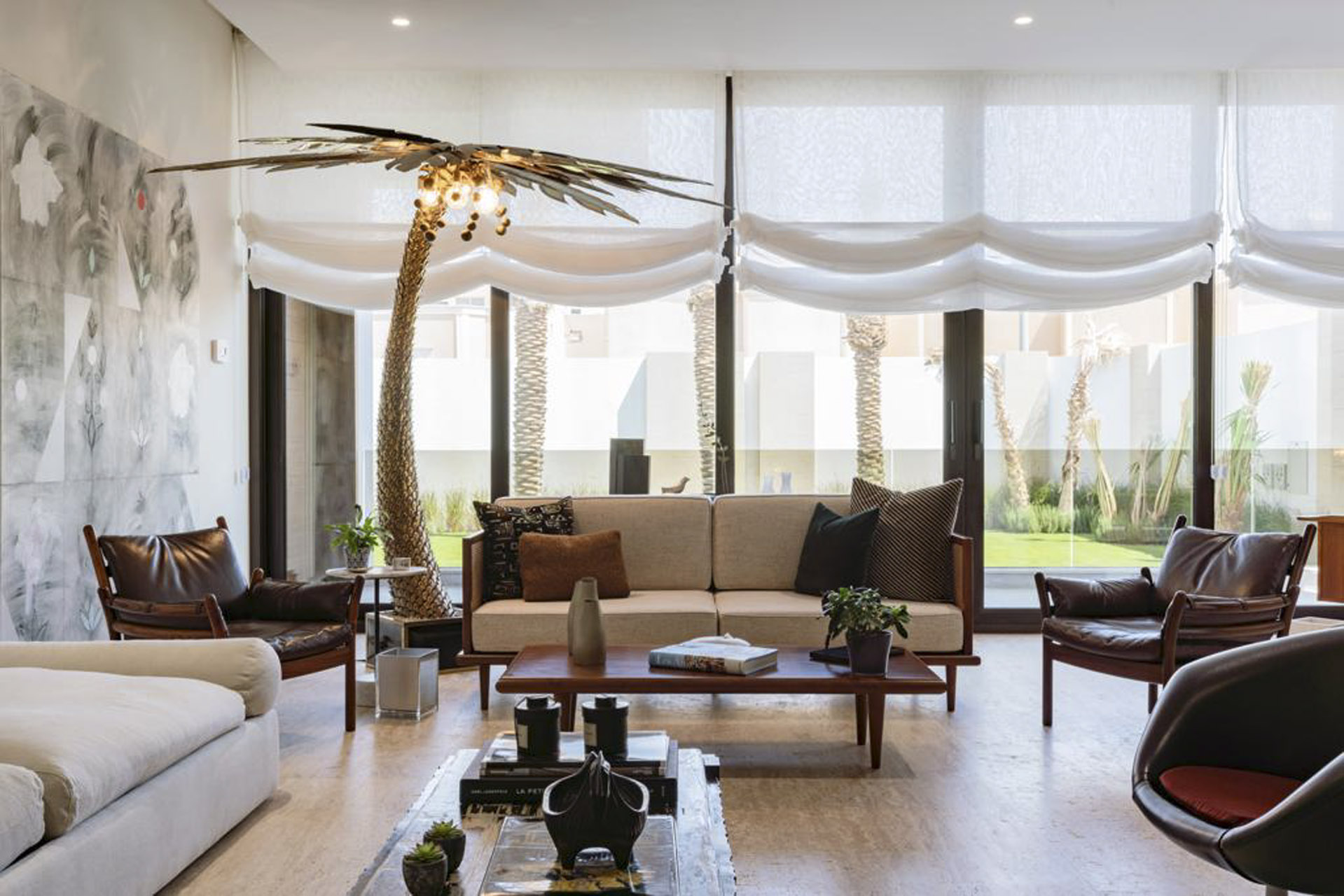 In collaboration with interior designer. Anoud Khalid Mishaal Al Saud. A young couple of art collectors with a passion for emerging Arab artists and international contemporary art, the residents of this home in Riyadh love to entertain family and friends. This is a very “social” house always full of people and positive energy. Since the couple has a clearly refined style we chose mainly vintage furniture and unique pieces with a strong character like for example the maison jansen palm tree that found its place in one of the living areas.